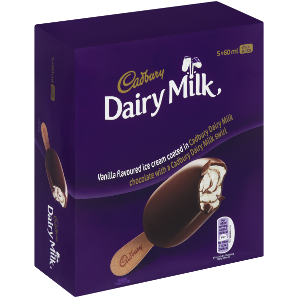 CADBURY CHOCOLATE I/CREAM DAIRYMILK M/PACK 1 x 5`S