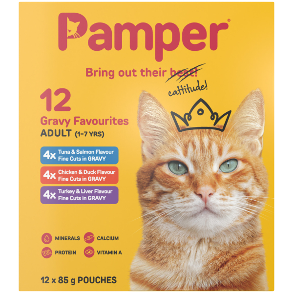 PAMPER CAT FOOD F/CUTS M/PACK GRAVY CANNED FOOD